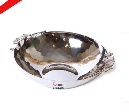 great quality shiny silver finished metal stainless steel hammered look serving bowl for hotel restaurant and bar