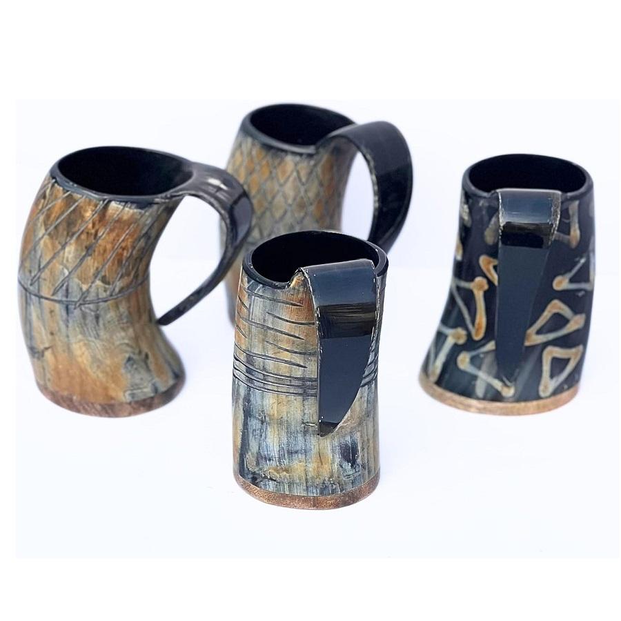 handcrafted natural horn mug for men real horn beer mug with leather handle Customization size available
