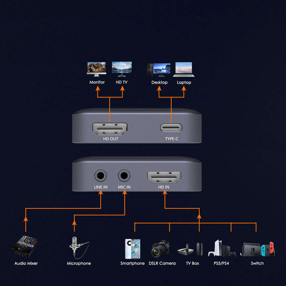 Output:1*HDMI loop-out, 1*USB-C to computer