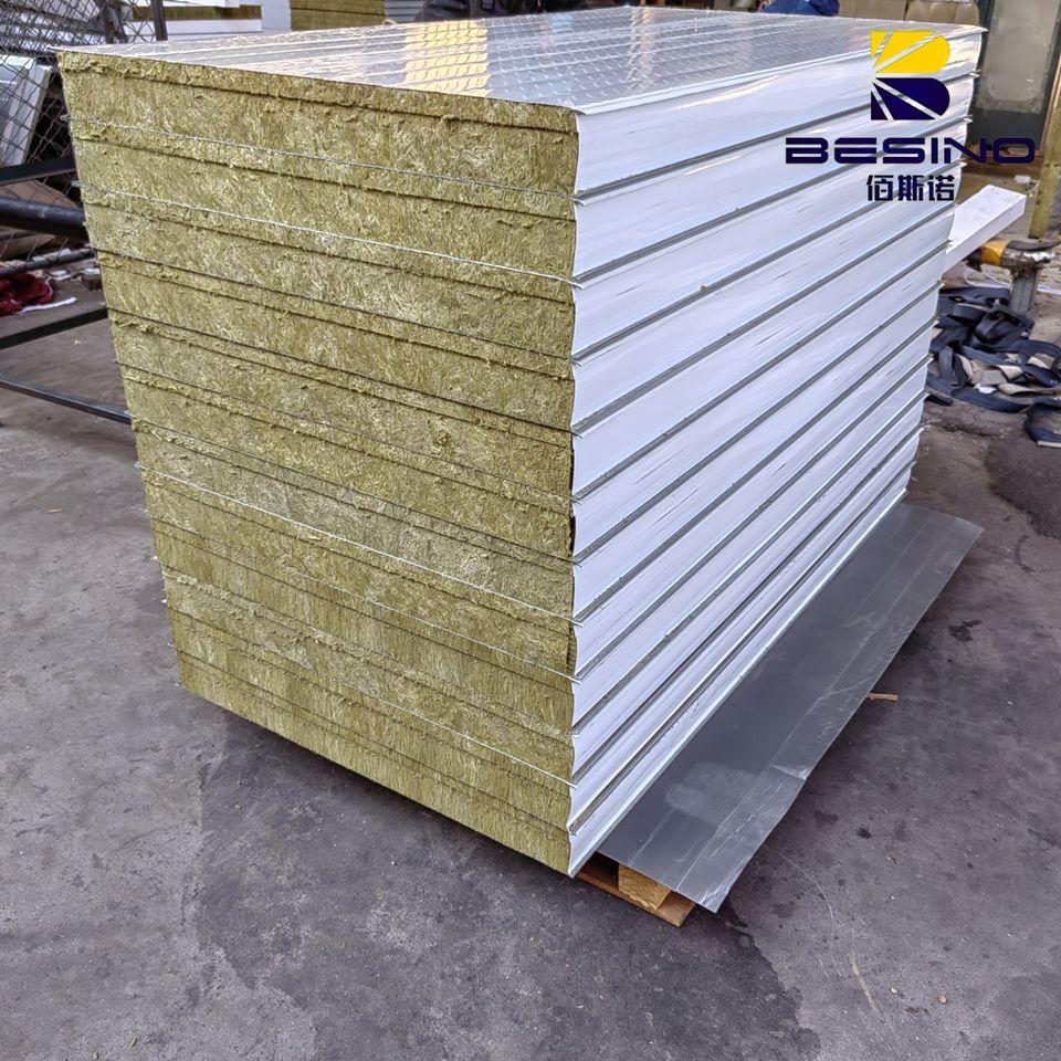 Fournisseurs de panneaux sandwich en laine de roche ignifuge à haute densité, panneau isolé pour l'isolation thermique des murs des entrepôts