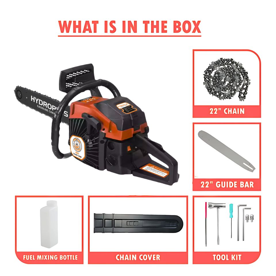 Tronçonneuse à essence Hydroplus International, moteur 68cc, qualité industrielle, guide-chaîne de 24 pouces, moteur deux temps, robuste, OEM