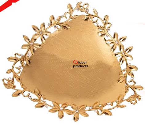 high standard golden finished hammered look triangle shape ser4ving platter for hotel restaurant and bar