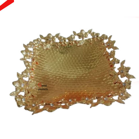 high standard metal golden finished hammered look square shape metal serving platter for hotel restaurant