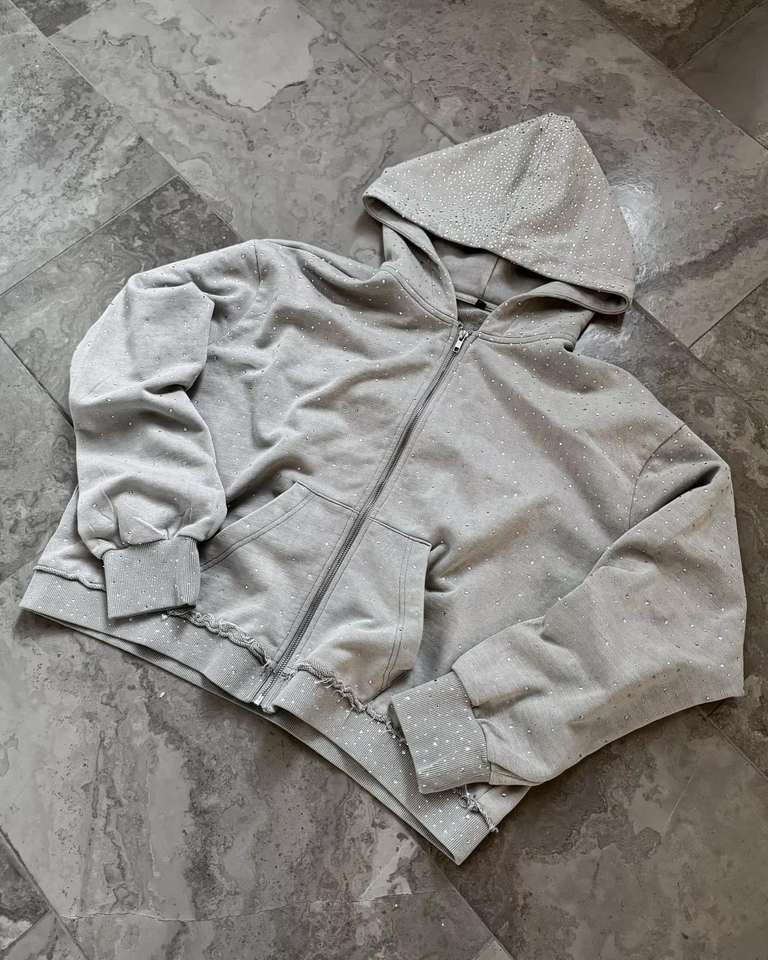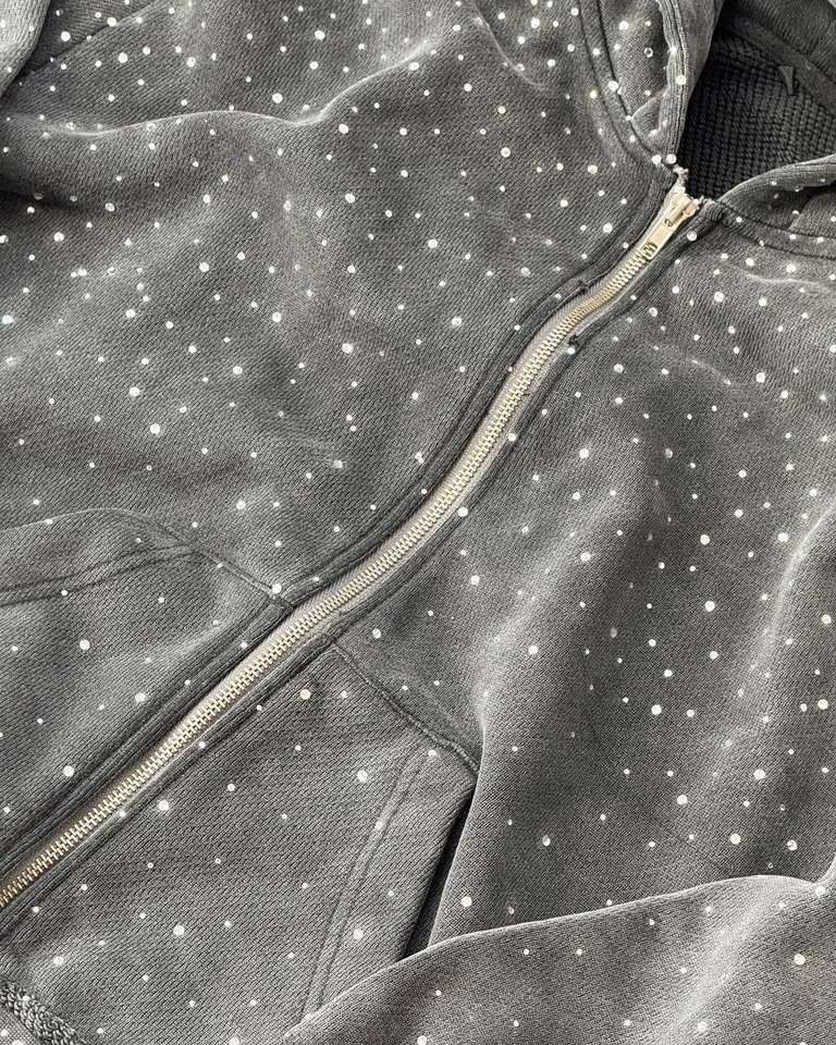 Sweats à capuche Sweat à capuche strass surdimensionné personnalisé Streetwear lourd Zip Up pour hommes Fabricant OEM ODM Sweat à capuche strass complet