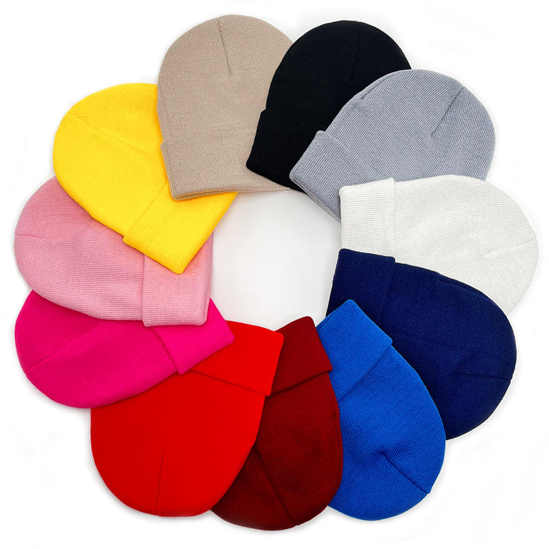 Winter Hats Solid Fold Up Unisex Custom Beanies Knitted Hat