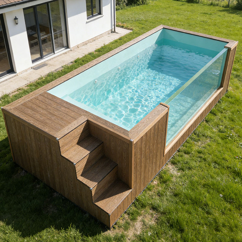 House Garden Family Adults Fiberglass Wooden WPC Overground Plunge Swimming Pool Outdoor Container Pool Infinity Edge Spa UV
