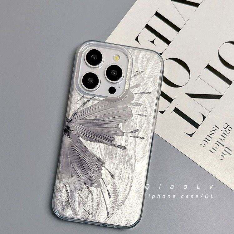 Étui pour iPhone 14 13 15 16 Pro Max, étui de téléphone en argent laser de luxe avec papillon pour iPhone 16E 11 12 Pro Max XS XR 7 8 17 Plus