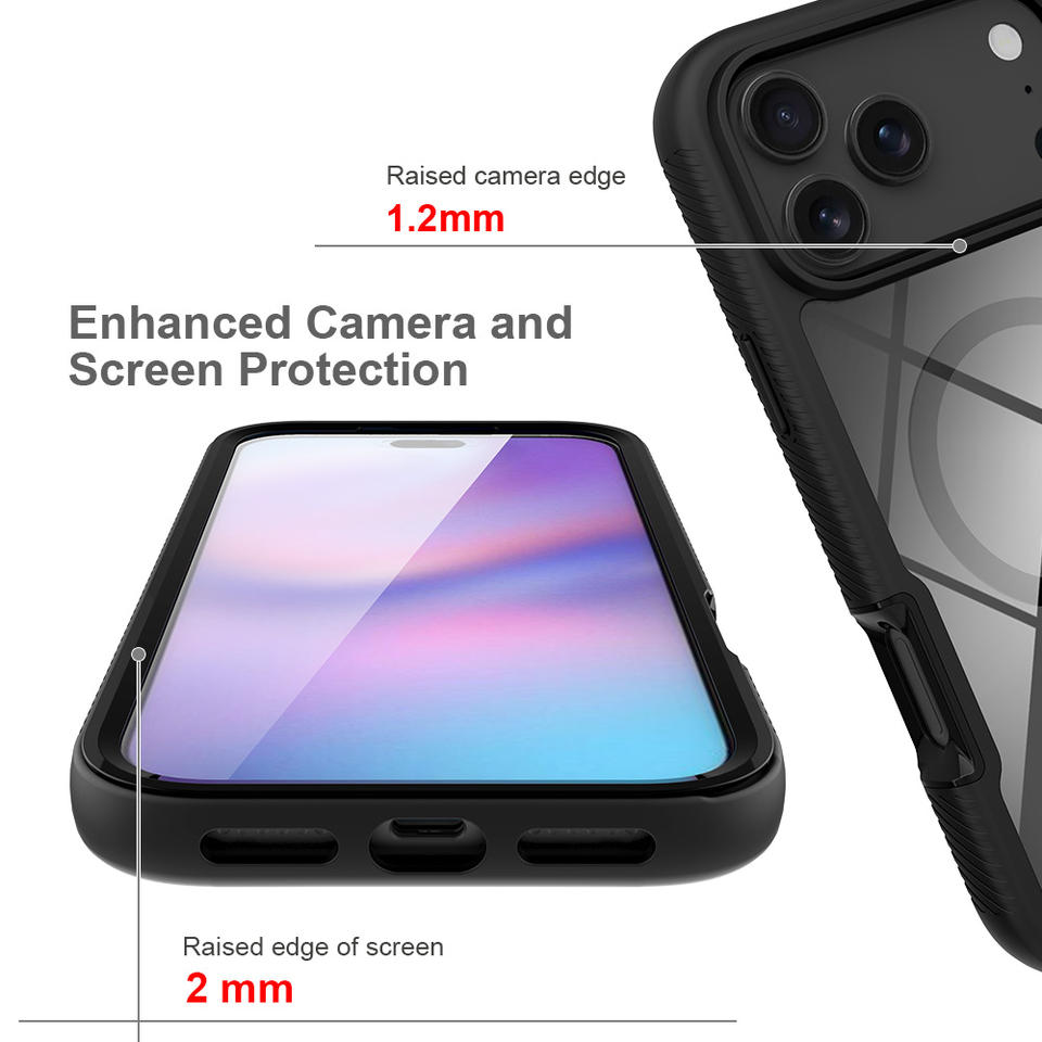 Coque de protection intégrale antichoc magnétique transparente anti-traces de doigts pour iPhone 17 Pro Max avec protection d'écran intégrée et compatible avec la recharge sans fil