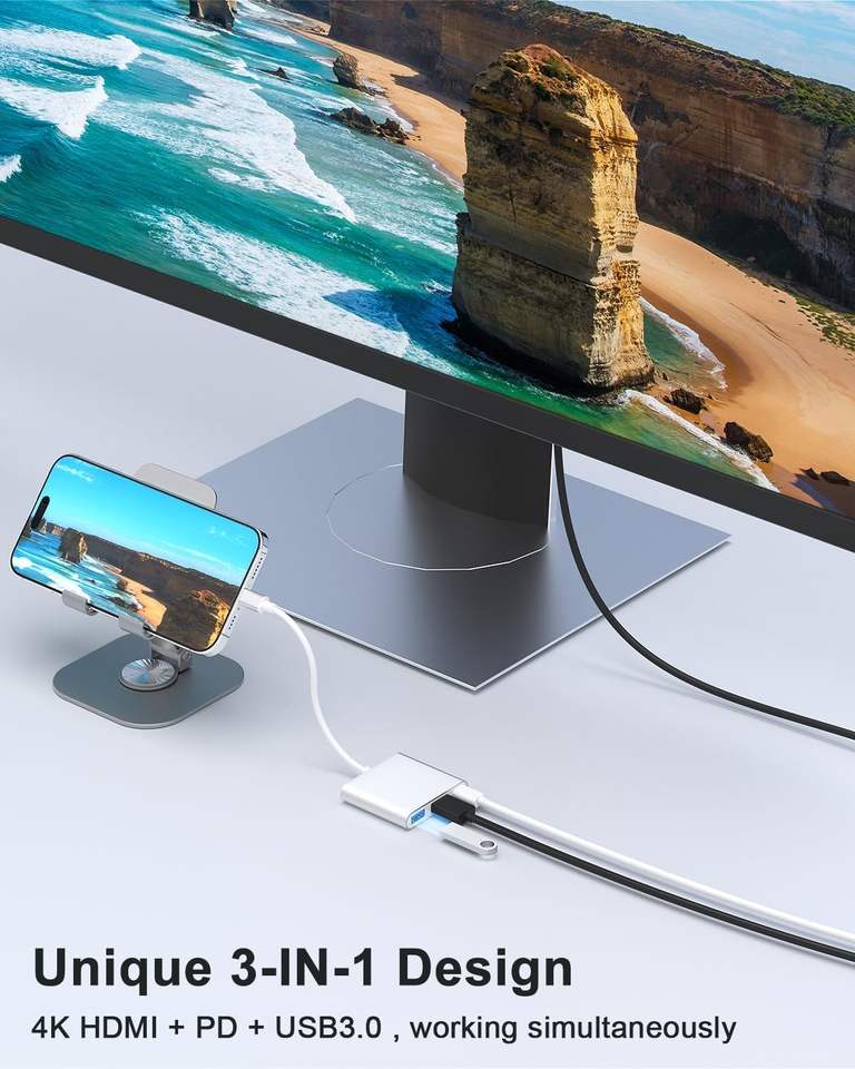 Adaptateur USB-C vers HDTV pour iPhone 15/16, MacBook, iPad avec charge rapide HD-MI PD - Pas compatible Lightning