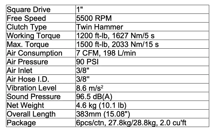 Clé d'impact d'air, Clé à chocs jumelle de marteau, Clé d'angle pneumatiqueType