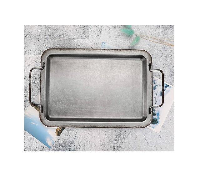 Plateau en fer métallique de style industriel Plateau galvanisé rustique Plateau de service rectangulaire pour table à manger