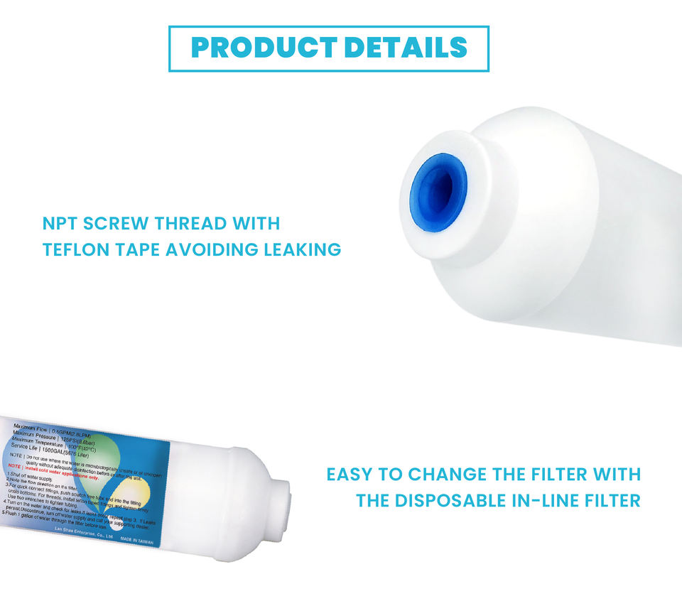 Cartouche filtrante en ligne LAN SHAN au charbon de coco, diamètre 2 pouces, manuelle, pour pré-filtration domestique et commerciale