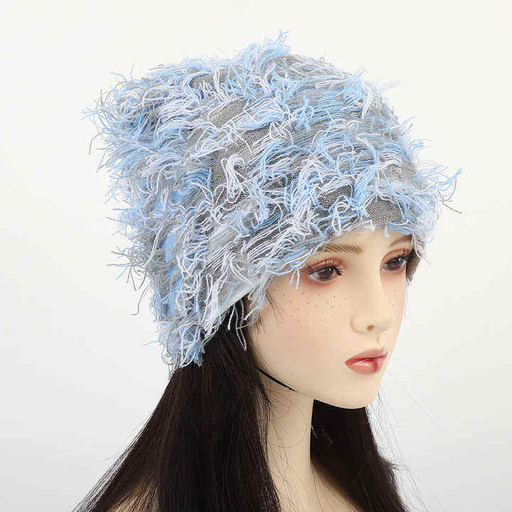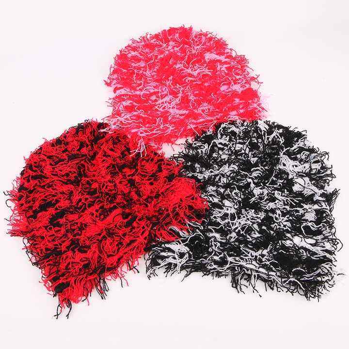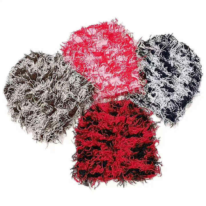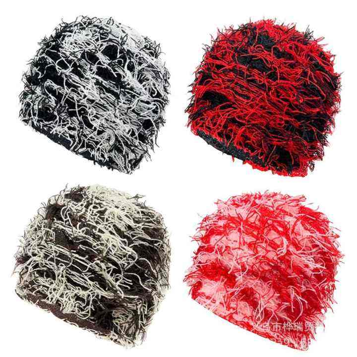 jacquard custom letter jacquard en Women Acrylic Skull Cap Cuffless Knit Y2k Wild Hair Grassy Distressed Distressed Beanie Hat