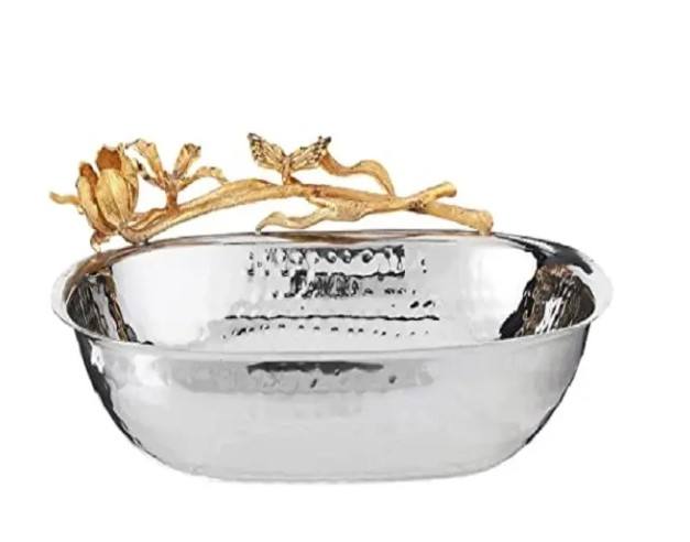 japanese Silver Stainless Steel Shiny Polished Handmade Dinnerware Bowl Gold Color Color Design Stand Serving Tableware