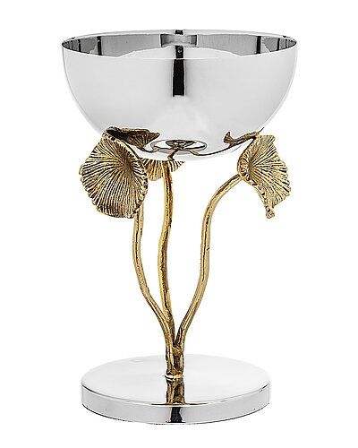 japaneseSilver Stainless Steel Shiny Polished Handmade Dinnerware Bowl Gold Color Color Leaf Design Stand Serving Tableware