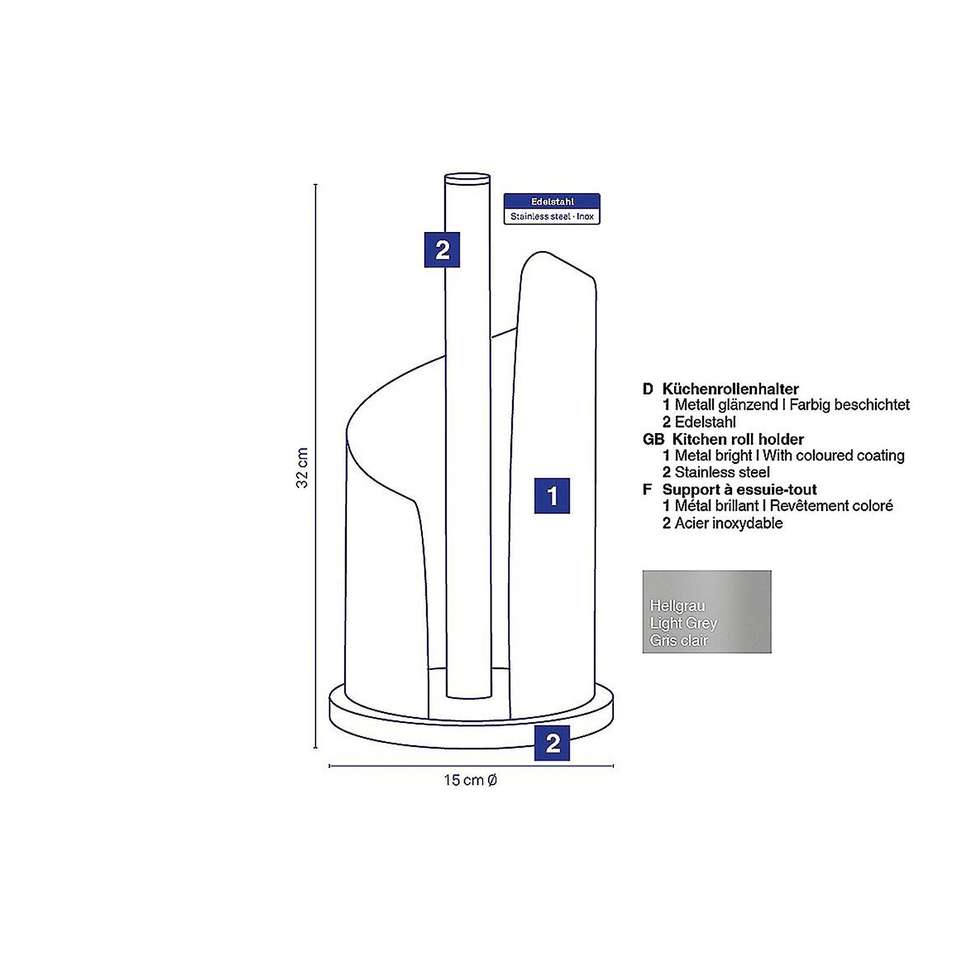 kela kitchen roll holder Stella Ø15cm H: 32cm stainless steel, light grey glossy
