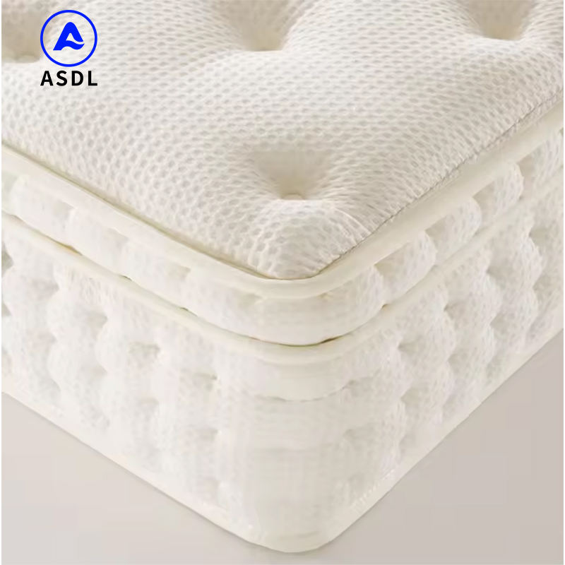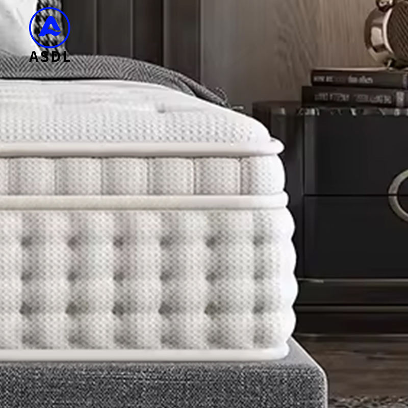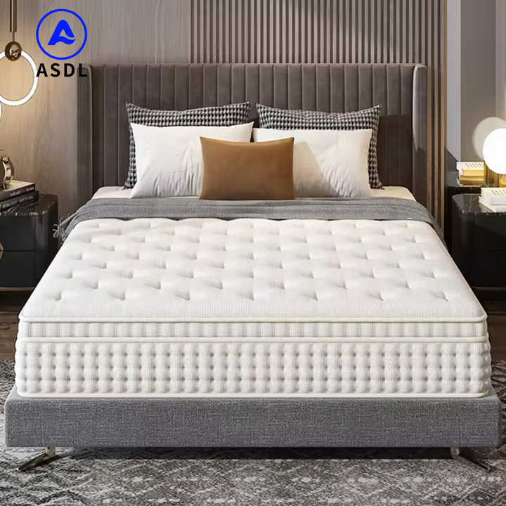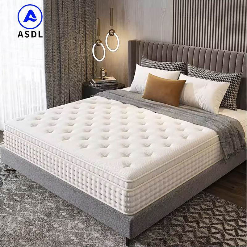 Matelas de qualité supérieure pour hôtel, en mousse à mémoire de forme, latex naturel, ressorts ensachés 5 zones, disponible en tailles King, Queen, Simple et Double, livré en boîte.