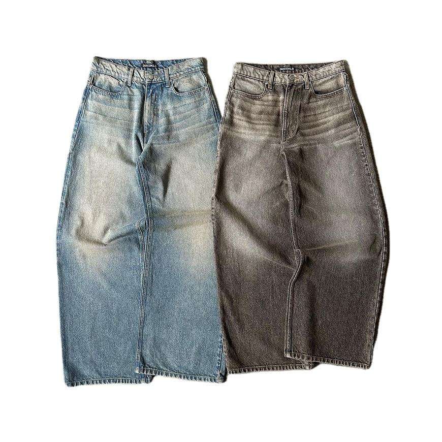 Kivotech-Pantalon baggy délavé à l'acide vintage taille haute, ample et surdimensionné, personnalisé, jeans pour hommes