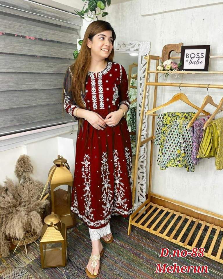 Ladies Cotton Reyon Anarkali Dress Latest Fashion Design Ready Wear Low Price Indian Garment Dupatta Jacket Wholesale Viscose