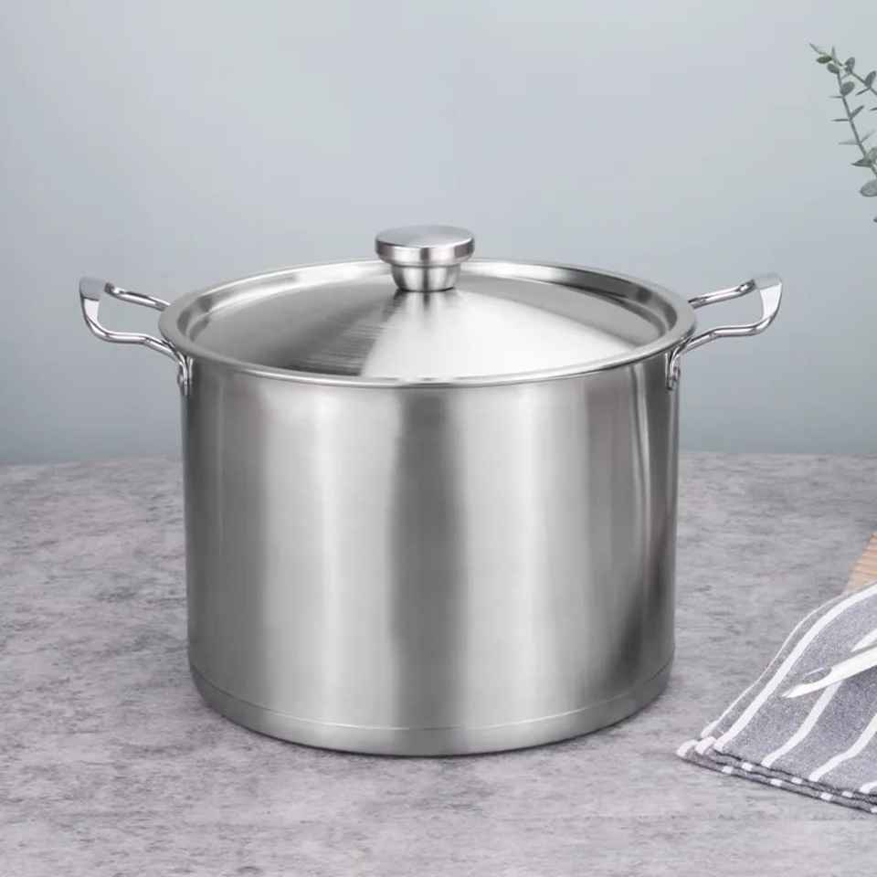 Grande marmite de cuisson professionnelle en acier inoxydable avec base à induction, marmite à soupe durable pour la maison