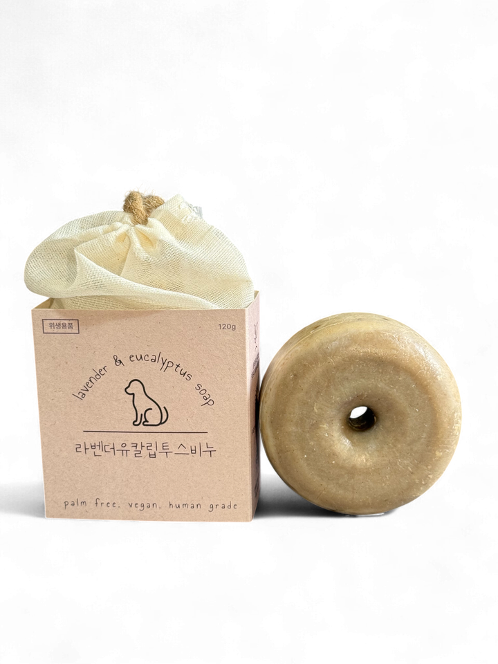 Savon moderne antibactérien écologique à la lavande et à l'eucalyptus pour chiens