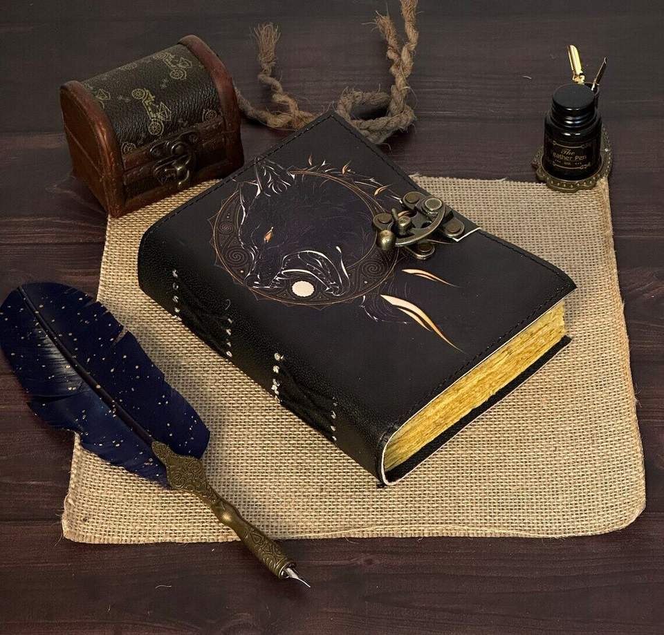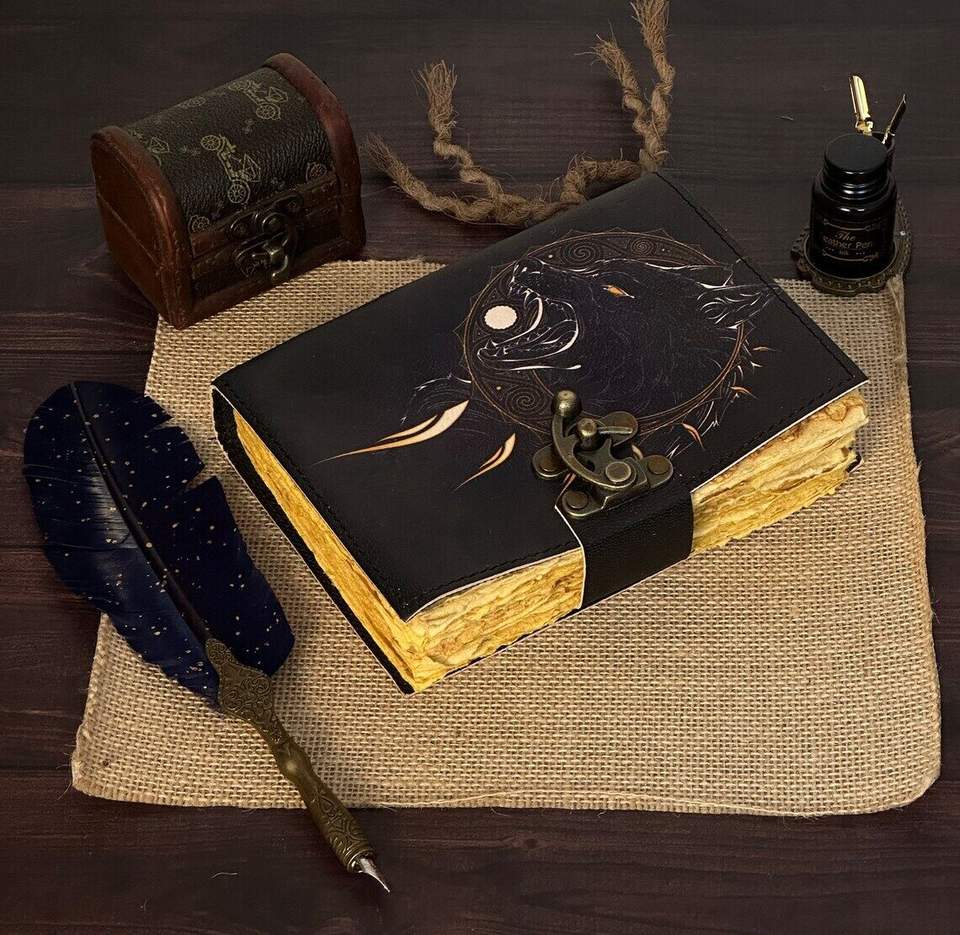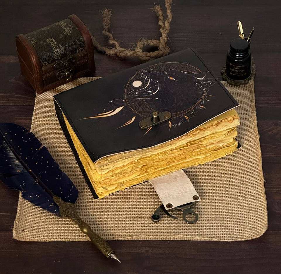 Type:Cuir Imprimé Loup Imprimé Fait Main En Cuir Relié Journal