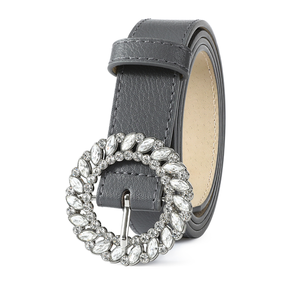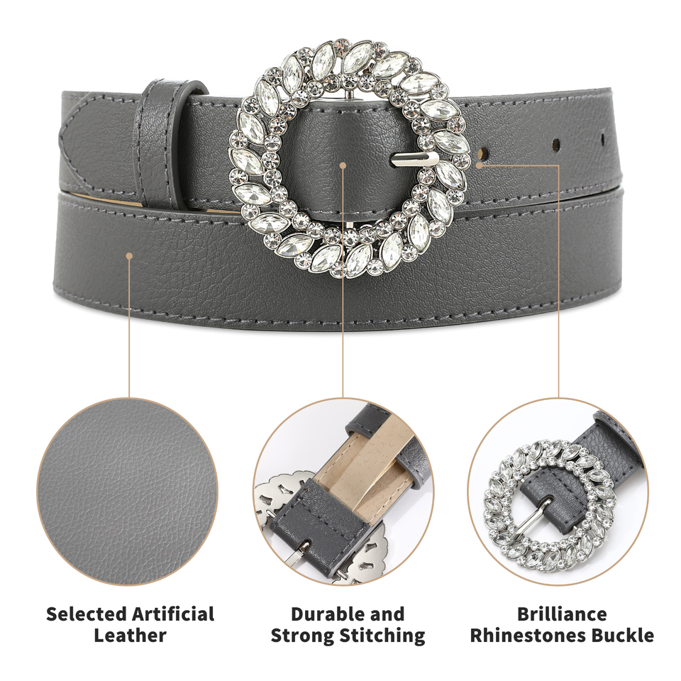 Designer Women's PU Leather Belts with Shiny Rhinestones O Ring Slide Alloy Buckle for Garments and Fashion Accessories