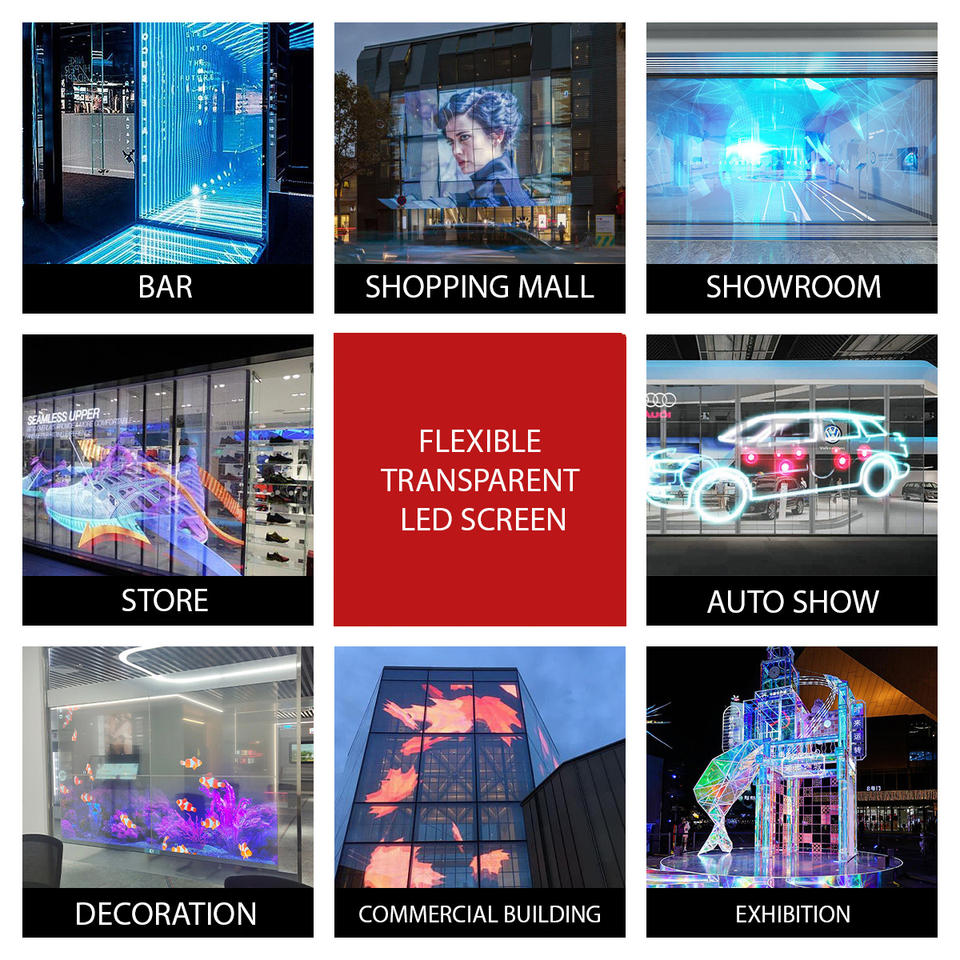P5.1,P6,P8, P10, P16, P20 Écran de film LED transparent flexible pour la publicité et l'exposition