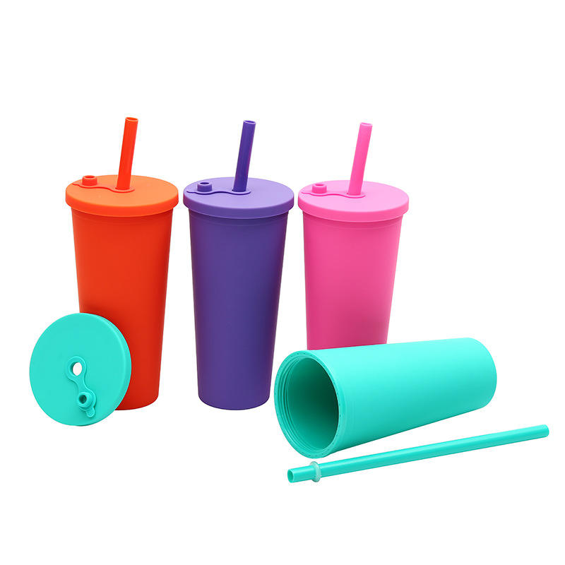 Tasse réutilisable en plastique à double paroi de 24oz avec logo personnalisé multicolore avec paille