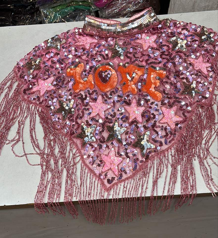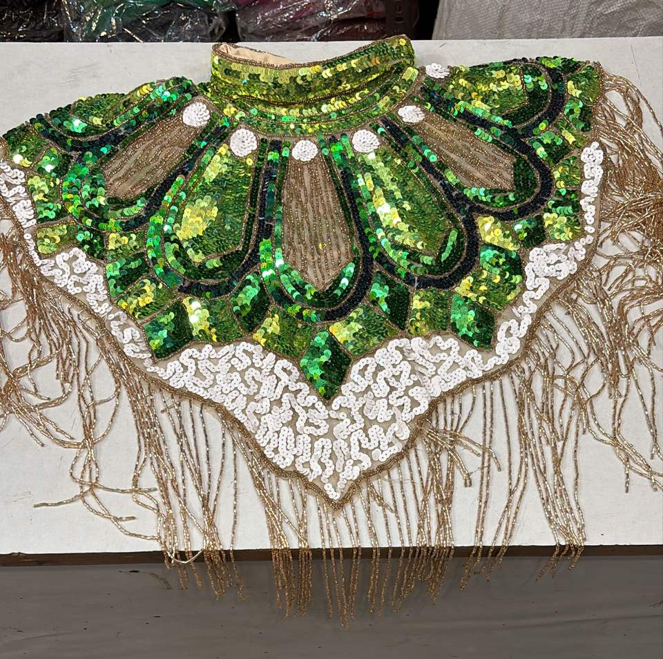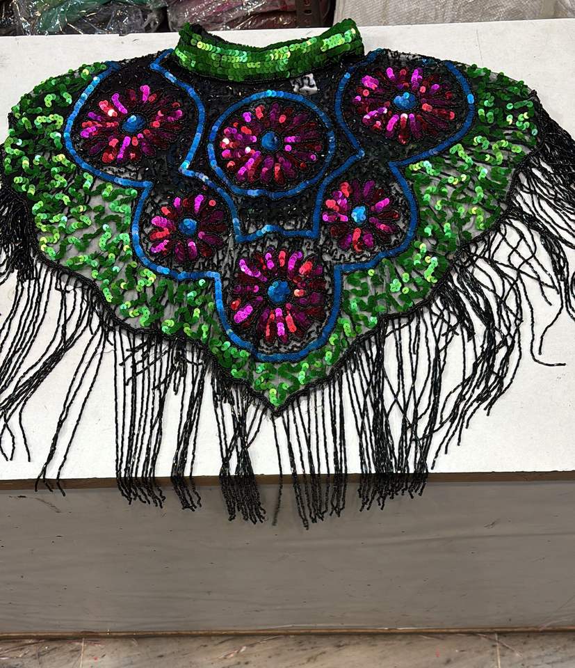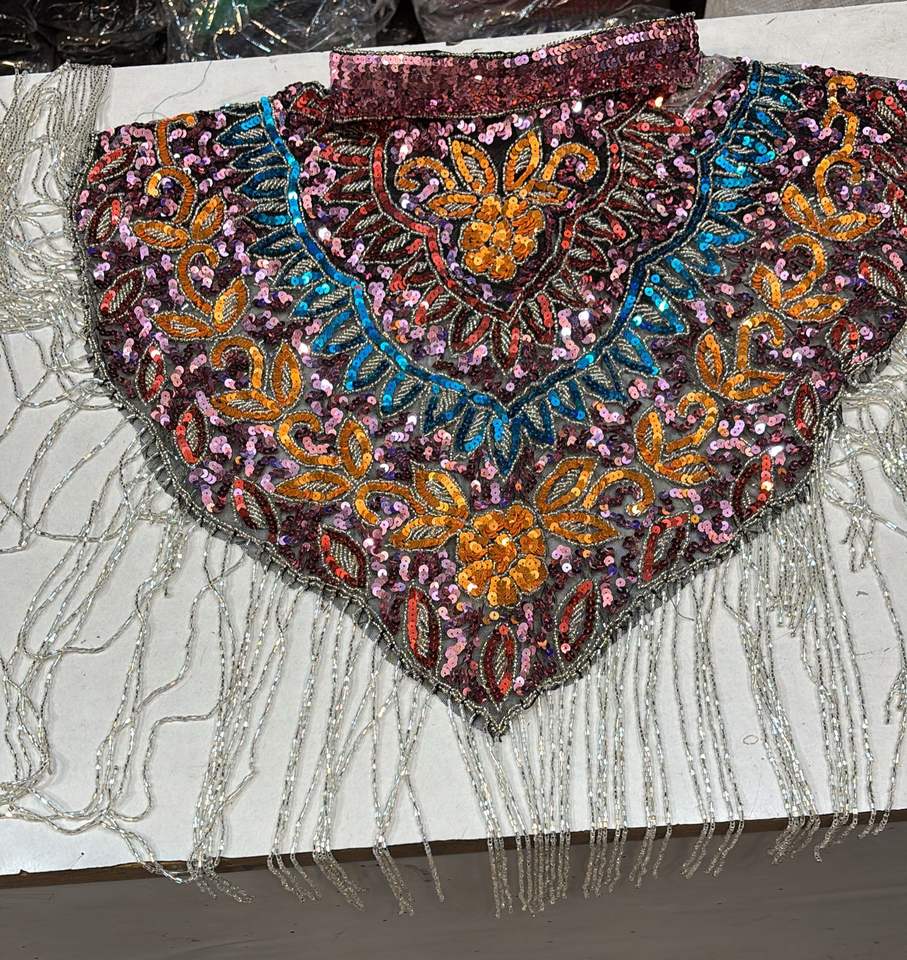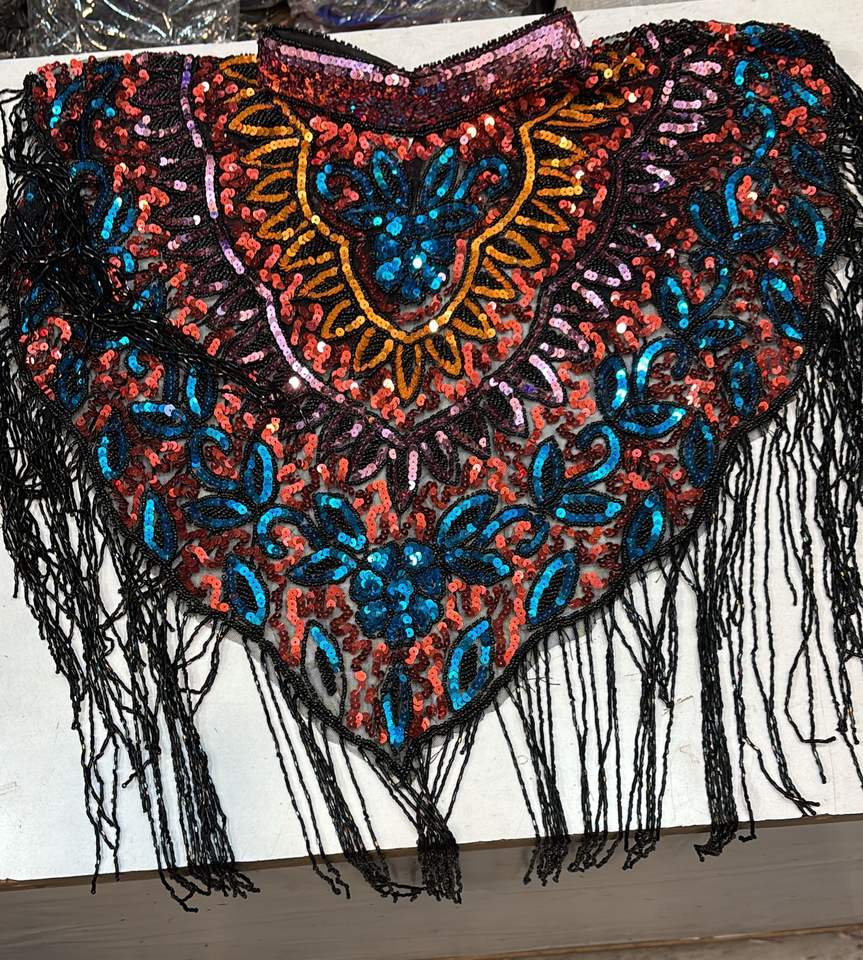 Longue écharpe à franges et perles fantaisie en polyester, faite à la main, pour soirée et club, avec design à sequins