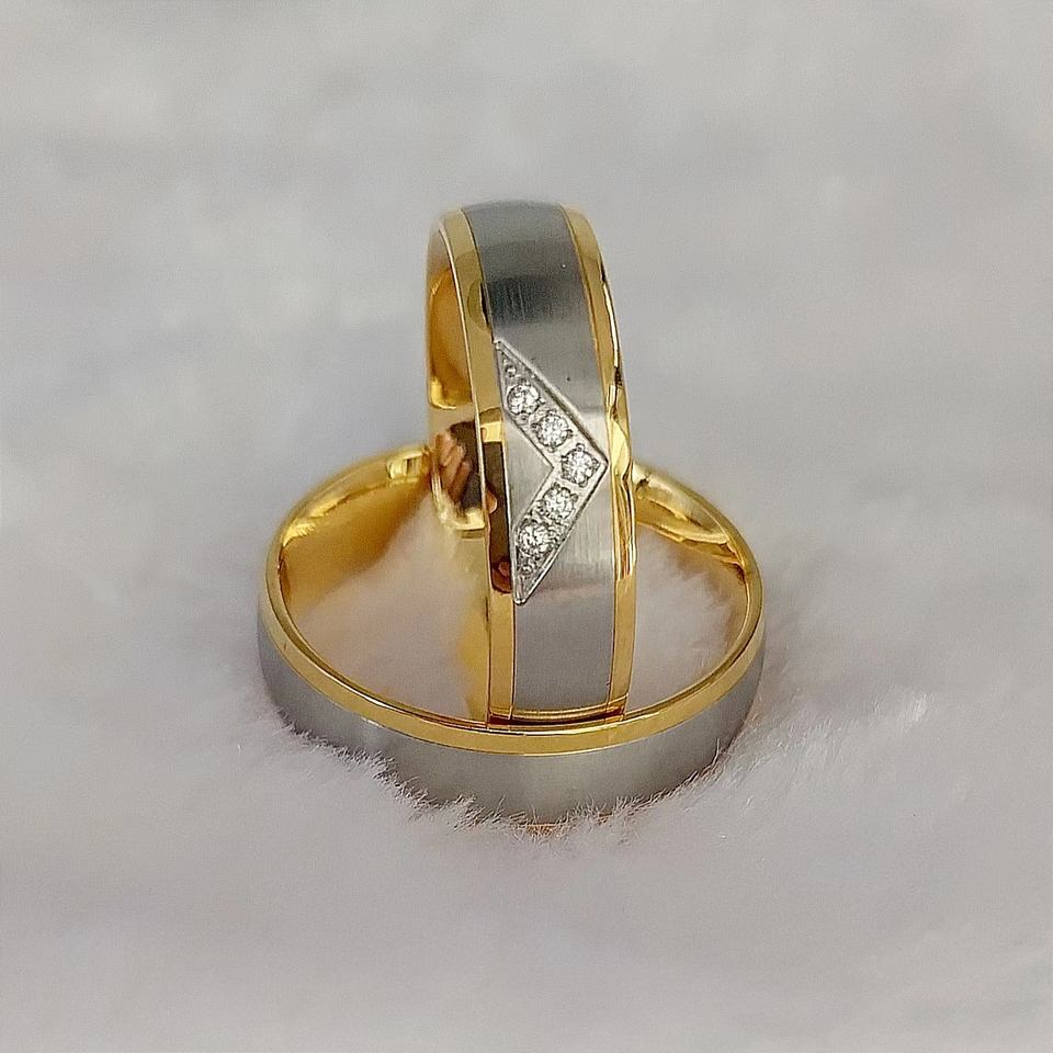 Amour Alliances Bandes De Mariage Couple Anneaux pour Hommes et Femmes Valentine Deux Tons Argent et Or 18k Plaqué Bijoux En Acier Inoxydable
