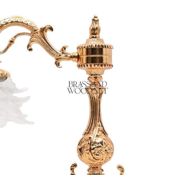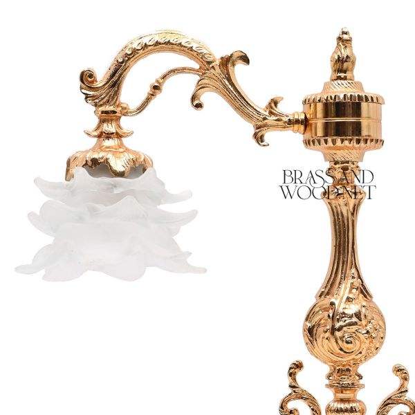 luxury golden brass table lamp with ornate floral base handcrafted decorative lighting piece featuring frosted glass flower