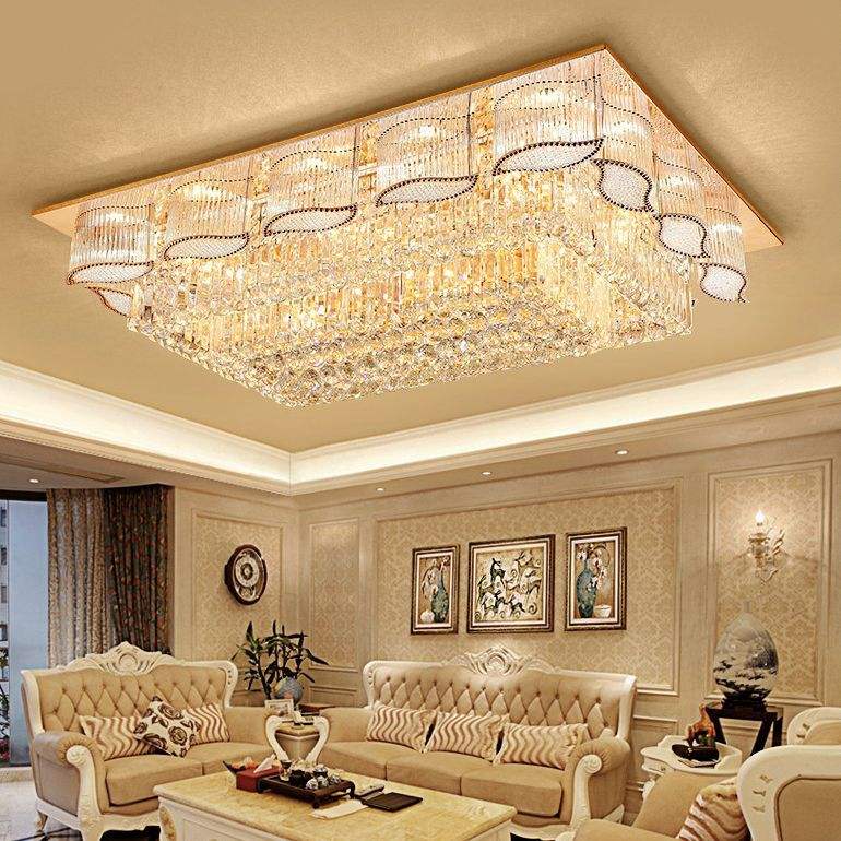 Plafonnier de lustre en cristal de goutte de pluie rectangulaire led monté en surface de luxe à vendre