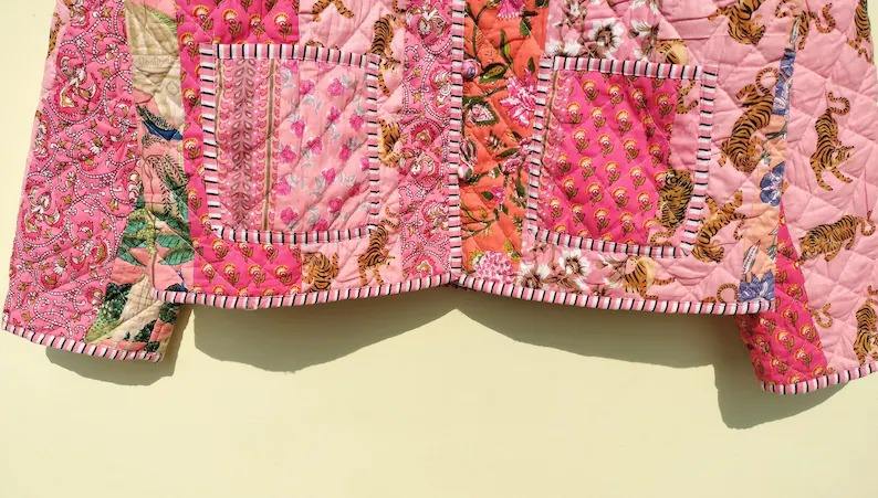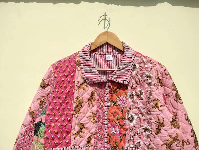 manufacturer and wholesaler quilted jackets reversible quilted patchwork pink cotton jacket reversible coat outerwear