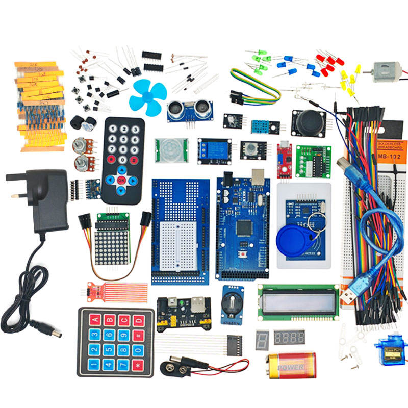 Kit de démarrage Mega 2560 R3 avec moteur, servo, RFID, capteur ultrasonique, relais, écran LCD pour Arduino avec chargeur de batterie, kit d'apprentissage
