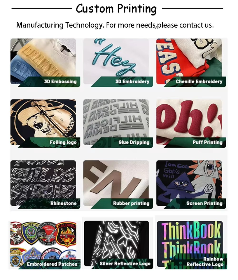 Méthodes d'impression:Tie-dye, Impression Puff, EMBOSSÉ, Impression de Chaleur-transfert, Impression numérique, Impression de silicone