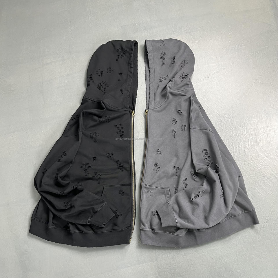 men's sweaters men tracksuit acid wash puff print ZIP up hoodie men sweatshirt sets plain vintage distressed hoodie