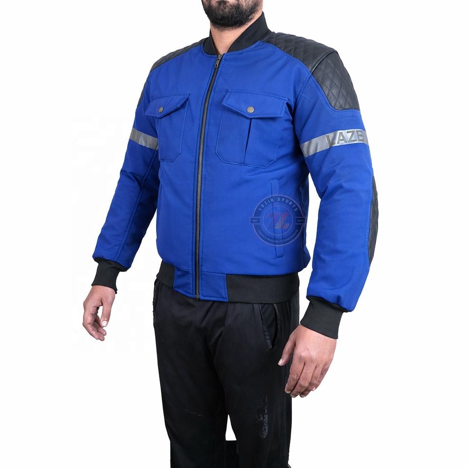 mens bomber style motorcycle jacket classic riding style with genuine cowhide leather safety patches on shoulders and elbows