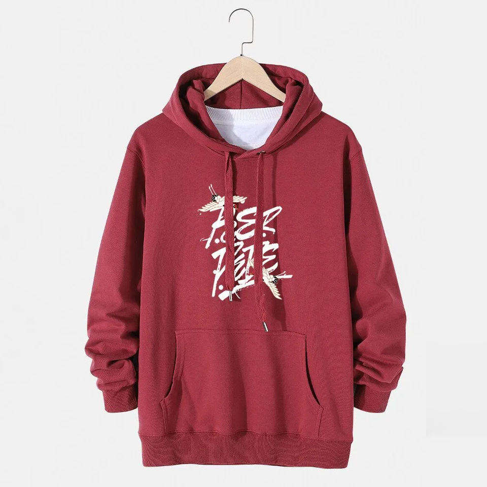 mens maroon graphic hoodie soft fleece pullover casual warm streetwear long sleeve hooded sweatshirt comfortable fashion wearfit