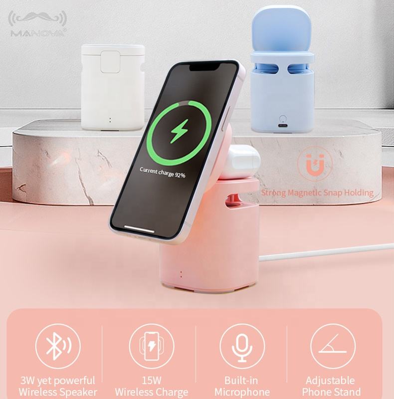 Nom du produit:Magnétique Sans Fil Charge Magnétique Téléphone Stand Bluetooth Haut-Parleur