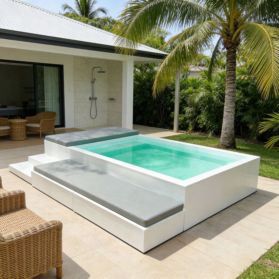 mini toboggan de piscine, couverture de piscine en acrylique, bord de piscine à LED, carreaux de piscine, décoration, poignée de queue de billard, piscine pour chien, meubles de piscine en rotin, piscine