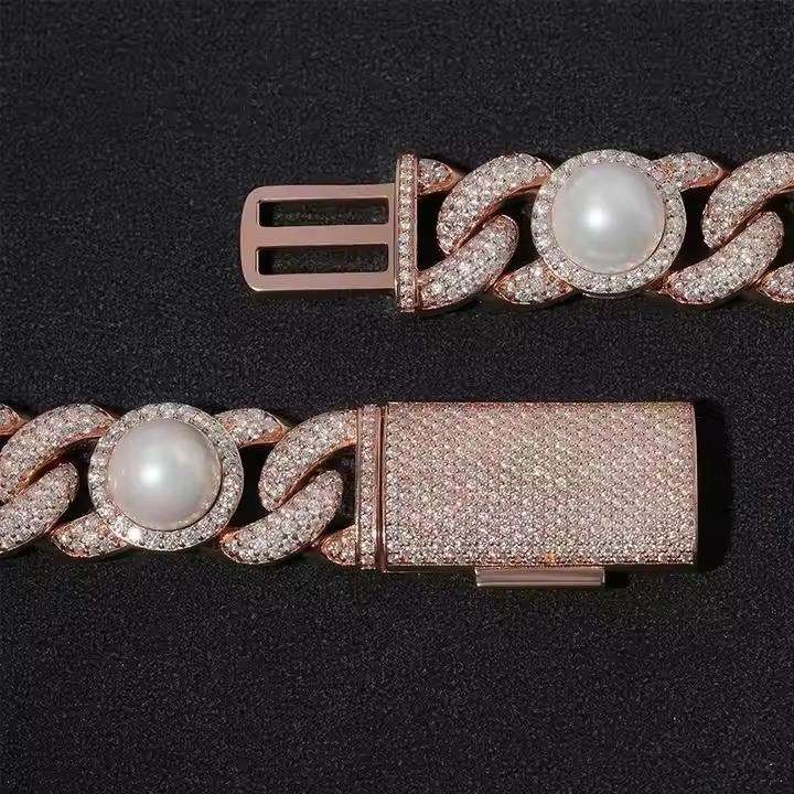 moissanite diamond Luxury Iced Out Cuban Link Chain 925 Hip Hop rose gold Plated Necklace cuban chain for Men