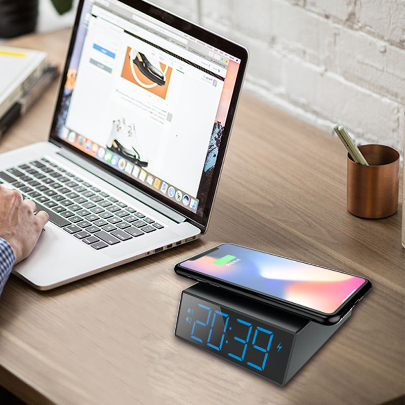 multifonctionnel l'utilisation d'horloge LED Qi sans fil chargeur de charge rapide pour iphone 8 plus chargeur sans fil