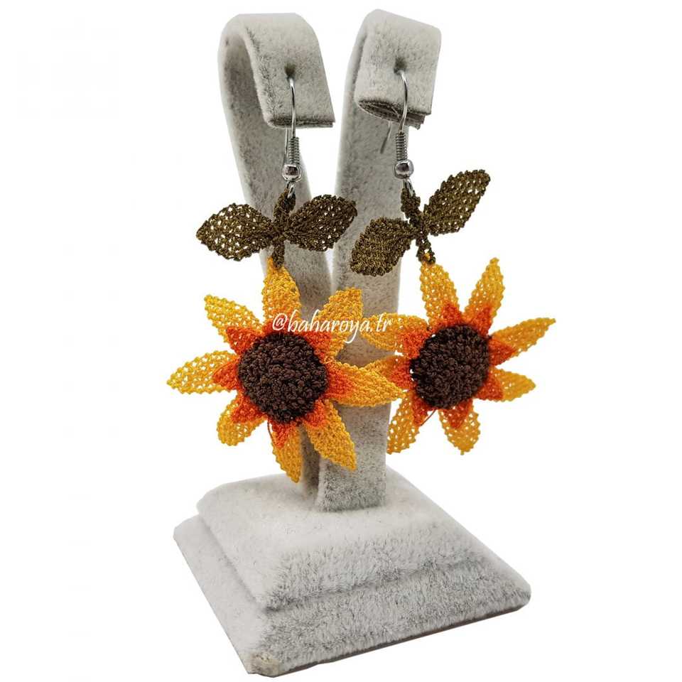İğne Oyası Ayçiçeği Küpe Özel Boucles d'oreilles à la mode