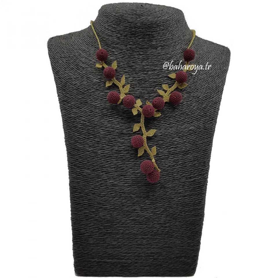 İğne Oyası İnci Kolye Bordo Elegant Pearl Necklaces