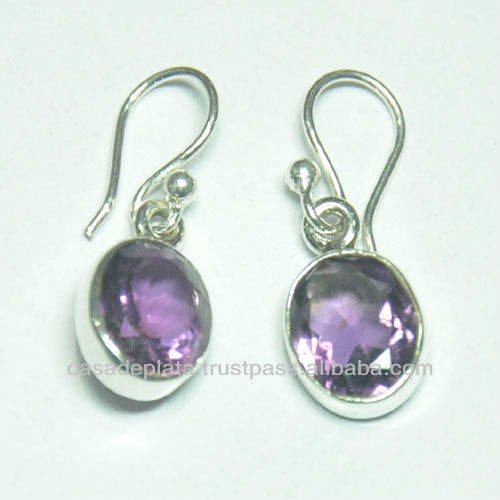 Boucle d'oreille en argent Sterling 925 Améthyste Gemstone Forme ovale Boucle d'oreille plaquée argent Boucle d'oreille pendante à la mode pour mariage