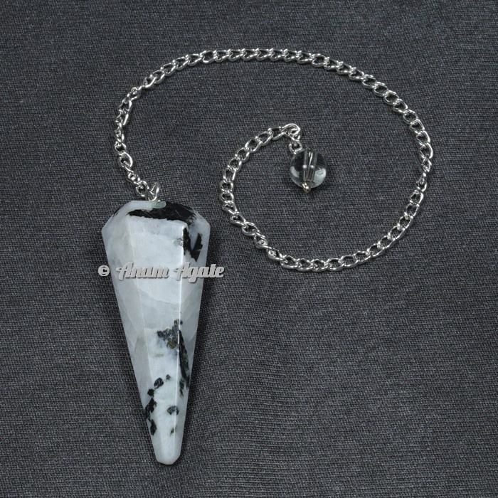 Pendule en pierre de lune crème olished à 12 facettes pour la guérison spirituelle Pendule métaphysique pour les praticiens du Reiki