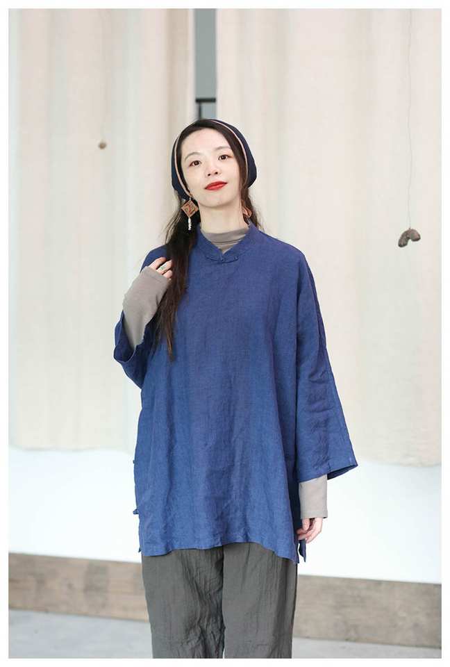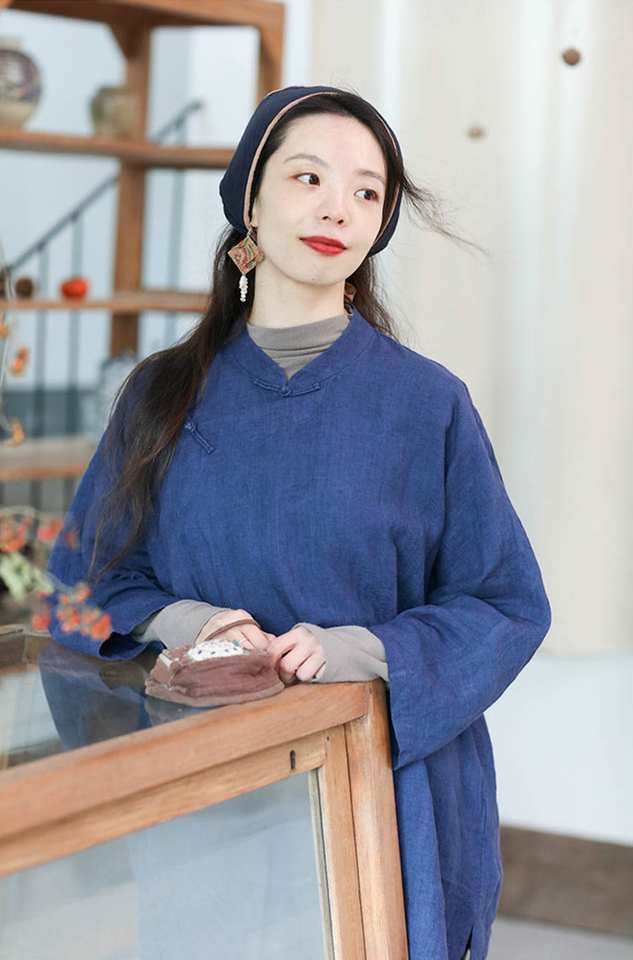 Nom du produit:Robe chemise tunique en lin Haut à manches longues