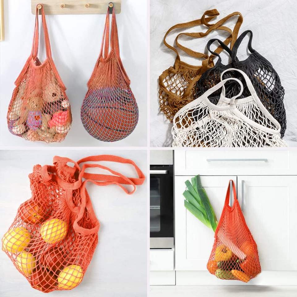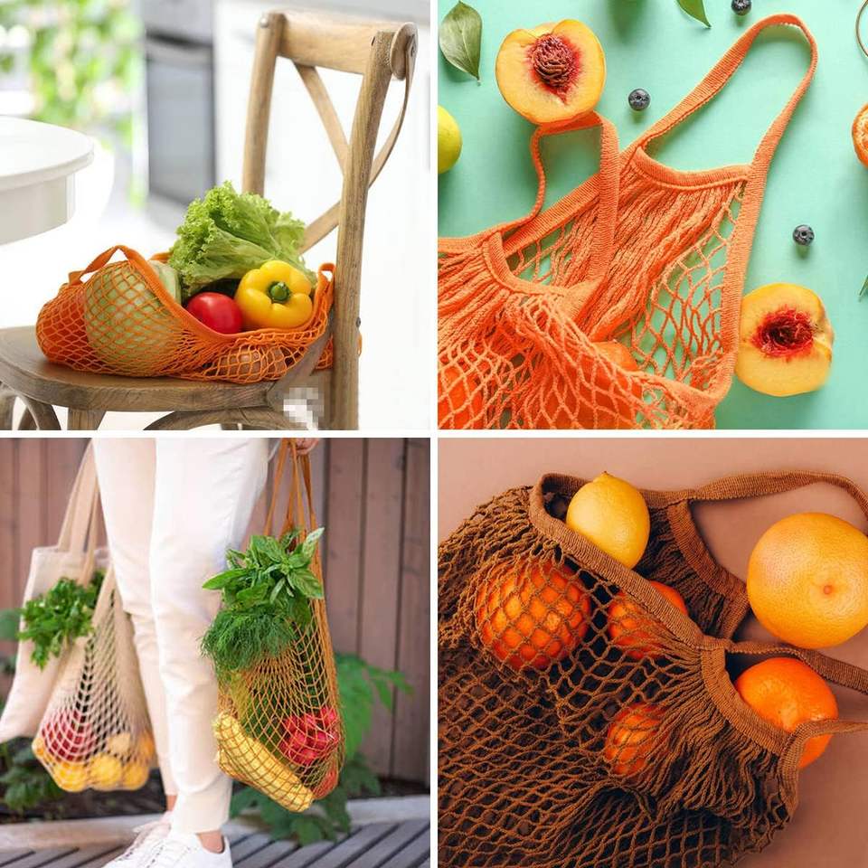 Sac à provisions portable en maille de coton pur de fruits réutilisable de stockage de mode 2 pièces
