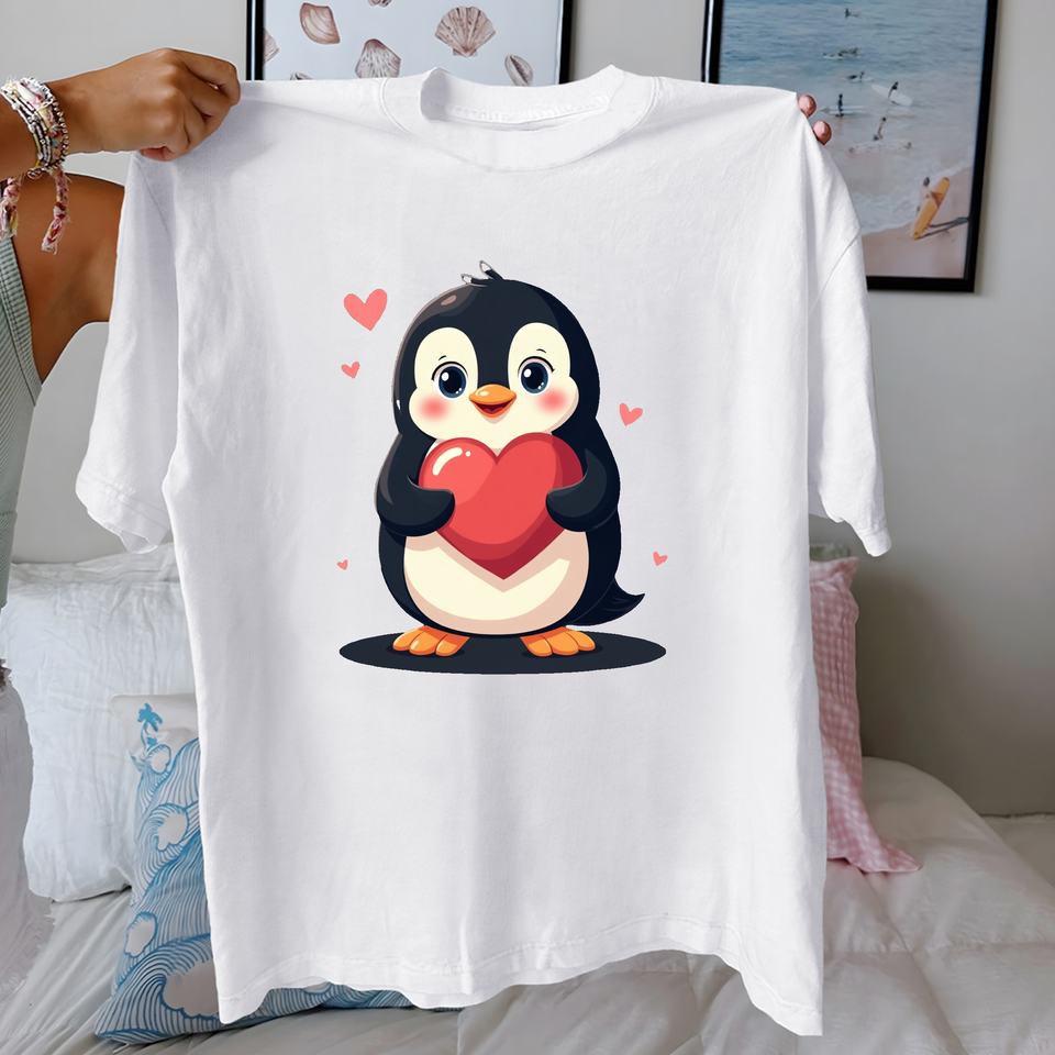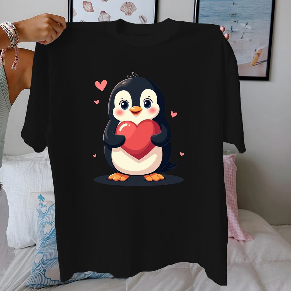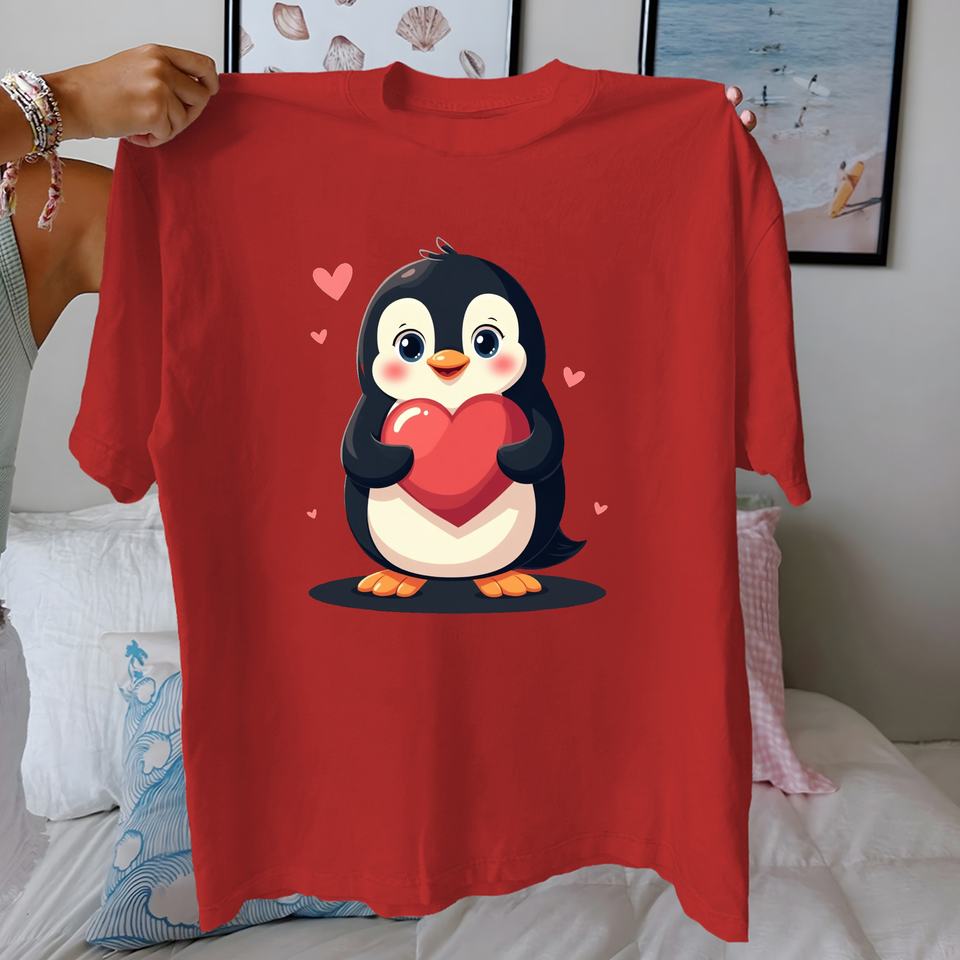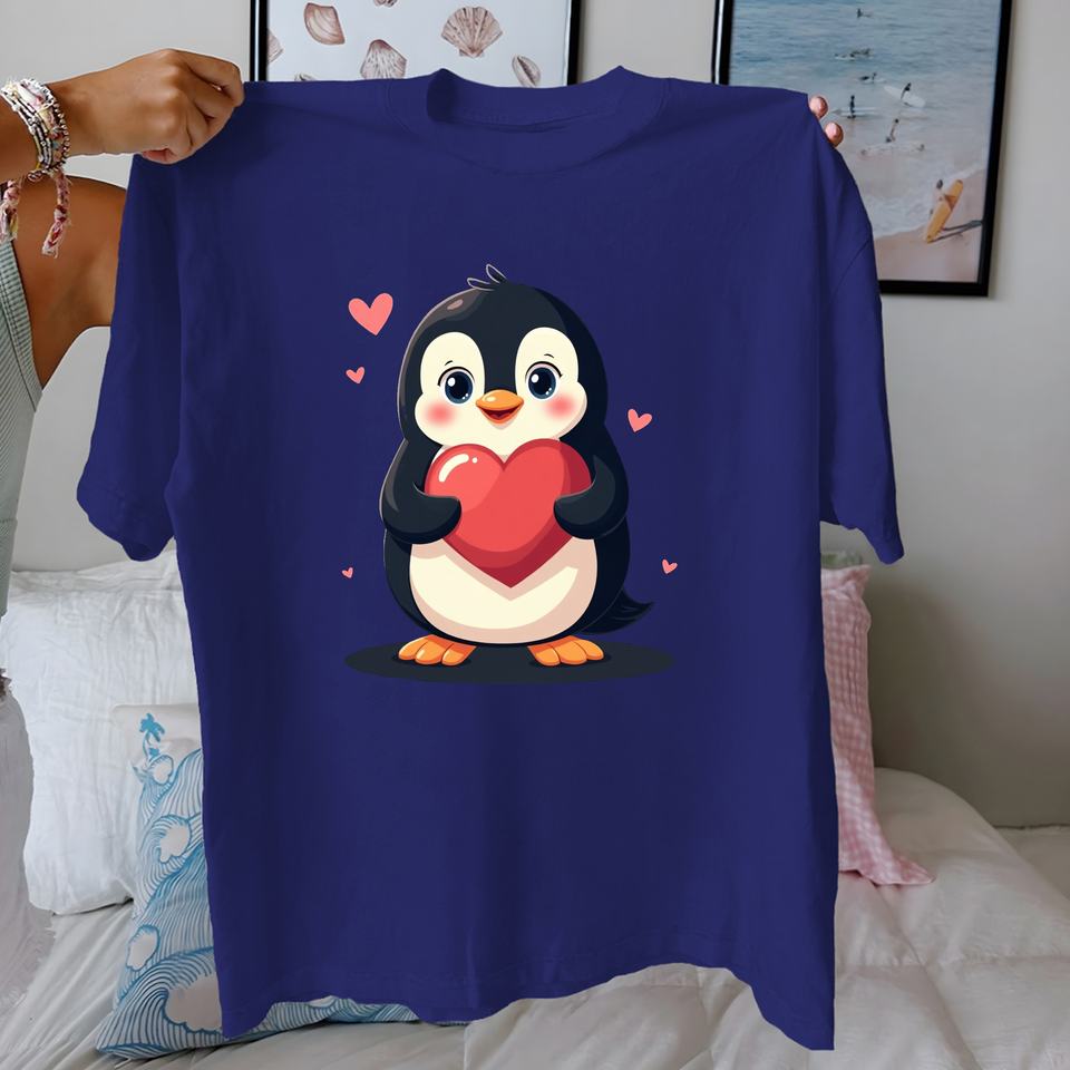 penguin with heart pure cotton women's Tshirt comfort fit